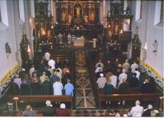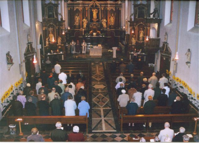 farrer Güter Daum hieß den hohen Würdenträger unter dem Beifall vieler anwesender Gläubigen in der Pfarrkirche St. Peter und Paul willkommen. Weihbischof Robert Brahm zelebrierte mit Pater Karl Brahm und Pfarrer Günter Daum ein Pontifikalamt für alle Verstorbenen der Gemeinde. Beim anschließenden Gang um die Kirche wurden die Gräber der hier Ruhenden gesegnet, begleitet von Gebeten der Prozessionsteilnehmer. Ein stilles Gedenken galt dem verstorbenen 95-jährgen ehemaligen Villmarer Pfarrer und Ehrenbürger der Gemeinde, Nikolaus Homm (*16.5.1909 +22.10. 2004), der an der Kirche seine letzte Ruhestätte fand.