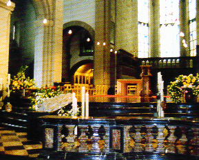 Bild oben: Matthiasgrab um 2003. Chorschranken, Fußboden und Treppenstufen aus dem 18. Jh. aus heimischem Marmor