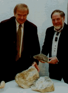 Der Steinfachmann Gerhard Höhler, Villmar (rechts) übergibt