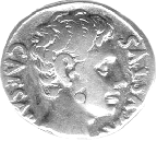 Kirche),neben alten (römischen?) Mauer- Fundamenten ein Augustusdenar