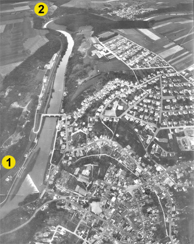 Die Geschichte hat gezeigt, dass eigentlich nichts untergeht, ohne eine Spur zu hinterlassen. Wir wissen nur nicht, wo die richtige Suche für die verschwundene Burg anzusetzen ist, denn die bisher bekannten Quellen sagen zu wenig über den genauen Standort aus. Viele Zeitgenossen sind geneigt, nach gleichnamigen Flur- oder Gesteinsnamen wie: „Im Gretenberg" oberhalb des Eisenbahn-Tunnels nahe der sogenannten „Speich", oder dem Marmorbruch „Gretenstein" gegenüber Villmar dessen ursprüngliche Lage bestimmen zu können. Geheimgang zur Burg? In der Gerüchteküche Villmars brodelt bis heute, dass es von der ehemaligen Kellereianlage (links der Lahn) einen unterirdischen Gang zur Burg Gretenstein (rechts der Lahn) gegeben haben soll. Ist das ein Märchen oder eine Überlieferung mit einem Fünkchen Wahrheit? Im Jahre 1821 ließ Hofkammerrat Jung, Nassauischer Rezepturbeamter von Runkel, durch Bergarbeiter die Ruinen auf der Burg (leider nicht näher bezeichnet) diesseits nach Altertümern untersuchen, ebenso auf der rechten Lahnseite auf einem großen Steinfelsen, wo ehemals das „Schloß Krätenstein" gestanden haben soll. An beiden Stellen wurde nichts gefunden. Auch der Villmarer Schultheiß Höhler wollte im Januar 1829 in einem Schreiben an das Amt Runkel wissen, dass die Gemeinde in der Gemarkung über der Lahn, „dort wo die ehemalige Burg Graetenstein gestanden hat" einen Steinbruch mit rotem und rotgrauem Marmor zu verpachten habe. Hatte die verschwundene Burg wirklich dort gestanden? Berief sich der Schultheiß auf noch erkennbare Reste der ehemaligen Burg oder brachte er mündliche Überlieferungen zu Papier? Sollte dies der Fall sein, so ist heute sicher, dass spätestens durch den enormen Abbau des Gesteins, der als „Gretenstein" den Marmormarkt im 19. und 20. Jahrhundert eroberte, alle wesentlichen Spuren für ewig gelöscht wurden. Philipp von Isenburg Der Limburger Chronist Tilemann Ehlen von Wolfshagen (1347-1420) hält bei der Beschreibung und dem Bericht über die Zerstörung der Burg Gretenstein deren Lage mit: „uf einen stein nit verre von Limpurg unde von Velmar" fest. Im Villmarer Kirchenbuch ist aus dem Jahre 1632 zur Geschichte der Burg Gretenstein folgendes nachzulesen „Um 1359 hat Philipp von Isenburg Büdingen, Herr zu Grenzau, der sich zu Vilmar aufhielt. „ auf einer nahen Felse" gegen die Rechte von Trier eine Burg gebauet. Er nannte die Burg Gretenstein, seiner Gemahlin zu Lieb; deßen Wittib-Sitz sie seyn solte. Die Burg wurde mit Burg-Männern aus der Pfalz und seinen Lehns Leuthen besetzet. Also konnte man aus der Burg die Nachbarschaft leicht beunruhigen. 1360 hatte Cuno Coadjutor des Trierischen Kurfürsten Boemundus, den Isenburger zu bekriegen mit der Trierischen Mannschaft Vilmar belagert. Kuno kam erstlich mit einer Schar edler Ritter und Freyen nach Limburg und führte alle in Waffen geübte Bürger im Klang der Glokken, 1800 an der Zahl nach Vilmar vor die Burge. Ein Führer der Reiter befahl dem Bürgermeister und Bürger von Limburg, voran zugehen. Johann Schuppe, der Bürgermeister aber sagte, dass die Limburger zwar bereit wären zu fechten, doch wolten sie mit ihren Leichen die Gräben nicht füllen. Wenn die edlen Ritter und ihre Knechte die erste wären, so würden die Bürger nicht die letzten seyn.- Der Adel und der Unterfürst Kuno greifen an, man ficht mit Muthe, Pfeile und Steine werden hineingeworfen. In einem halben Tage wurde die Burg gewonnen. Kuno, der Trierische Koadjutor wurde am Gesicht durch einen Steinwurf verwundet. Heinrich von Runkel ist von einen Steinwurfe nach etlichen Tagen gestorben. In der Burg wurden gefangen Philipp, der Isenburgische Herr, Johann von Montfort, und 36 andere von Geburth sowohl als Krieger ansehliche Männer welchen der Sieger in folgendem Jahre, auf Anhalten Rudberts des Jüngern zu Pfalz, das Leben und Freyheit geschenket hat" In einer Urkunde vom 13. Febr. 1362 erklärt sich Philipp schuldig, widerrechtlich eine Burg gebaut zu haben: „ obwenig Schadeck bey der Laene". Graben als Sicherung Das Rätseln um die Burganlage ist trotz der obigen Beschreibungen „Auf einem nahen Felsen", „ Steinbruch Gretenstein über der Lahn", „Felsen nicht weit von Limburg und von Villmar", „oberhalb Schadeck an der Lahn" bis heute geblieben. Aus dem Bericht im Kirchenbuch kann als wesentlicher Hinweis noch entnommen werden, dass sich das Areal auf einem Felssporn befand, der auf der Landseite durch einen Graben gesichert war. Könnten die Steine der noch vorhandenen Burgreste Grenzau oder der Isenburg, oder der alten Burg in Villmar reden, wüssten wir sicher mehr über den damaligen Neubau des Grafen Philipp. Wer weiß, vielleicht finden kommende Generationen mit moderneren Techniken oder der Kommissar Zufall den Schlüssel zur Burg „Gretenstein". Bildbeschreibung: Im Vordergrund (1) Der Steinhang rechts der Lahn gegenüber Villmar. Hier wurden in den zurückliegenden Jahrhunderten unzählige Tonnen Marmor gefördert. Im Hintergrund (2) die Schadecker Flur "im Gretenberg" oberhalb der Speich. |