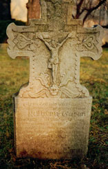 Marmor- Grabstein der 1674 und 1693 verstorbenen Brüder Philipp und Matthias Caspari auf dem alten Totenhof an der Villmarer Pfarrkirche.