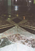 Die in unterschiedlichen geometrischen Mustern verlegten Fußböden aus buntem, grauem und schwarzem Marmor spiegelten sich in den Fenstern exklusiver Boutique Wie aber kam Lahnmarmor nach New York? Nachforschungen bei den Verantwortlichen des Empire State Building in New York haben ergeben, dass die Planer der prachtvollen Marmorausstattung des monumentalen Gebäudes eigens Experten nach Europa schickten und in Italien, Frankreich und Deutschland verschiedene Marmorarten in Augenschein nahmen. Die heutige Direktorin Mrs. Lydia Ruth, NewYork , wusste laut Archiv- Verzeichnungen vom 17. März 1930, sowie 5. Januar 1931 zu berichten, dass in " Old Germany" die Wahl auf den schon weltberühmten Lahnmarmor in Villmar, Schupbach und Gaudernbach fiel. Dieser 380 Millionen alte Devonstein war laut Prüfungsergebnis als besonders wasserabweisend und druckfest befunden worden. Marmormetropole Zudem genoss Villmar an der Lahn den Ruf als "Marmormetropole", denn es verfügte nicht nur über mehr als ein Dutzend Marmorbrüche mit verschiedenfarbigen Steinarten, sondern auch über eine Marmorfabrik und mehrere anerkannte Stein- und Bildhauerwerkstätten. Der Besitzer der Nassauischen Marmorfabrik Dyckerhoff & Neumann, Villmar/Lahn, lieferte über 70 cbm. Famosa, hell- bis dunkelgrau- violett aus Villmar und Schupbach. Aus dem Nachbarbruch in Gaudernbach kamen 200 cbm. "Auberg, bräunlich- grau mit rot", als Rohblöcke im Gesamtgewicht von 723 Tonnen per Schiff nach New York für die Ausstattung des Empire State Building. Die nötige Steinbearbeitung und Montage führte die New Yorker Fachfirma "William Bradley and Son" aus. Unter den Arbeitnehmern befand sich auch der bereits erwähnte Steinfacharbeiter Josef Istel, der dadurch Arbeit und Brot gefunden hatte. Für viele Villmarer Bürger, die Anfang des 20. Jahrhunderts durch Auswanderung in New York eine neue Heimat fanden, wurde der Lahnmarmor in diesem Wolkenkratzer ein Stück Heimat. " Immer wenn ich Heimweh hatte", so die betagte 90-jährige in Villmar geborene Amerikanerin Maria Reul-Friedrich, " führte mein Weg ins Empire State Building, um den Marmor aus der Heimat zu streicheln" |